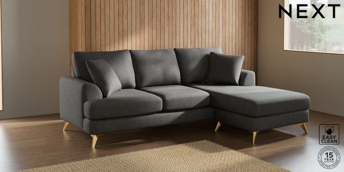 7.2.5 Buy Parker Small Sofa Chaise - Universal Tweedy Blend Easy Clean Dark Grey High Metal - Brass from the Next UK online shop Click here to use our accessible website