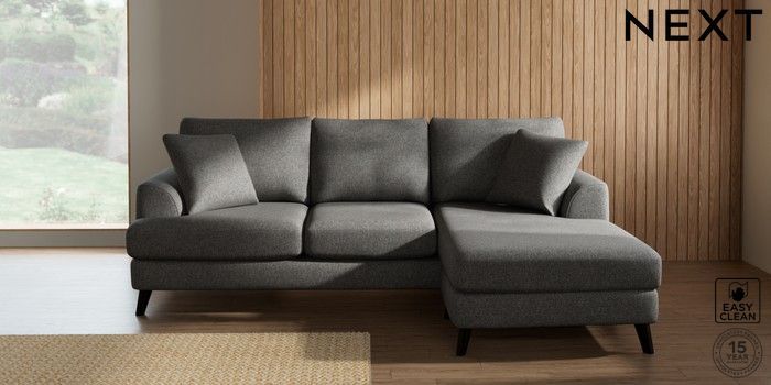 7.2.10 Buy Parker Small Sofa Chaise - Universal Tweedy Blend Easy Clean Dark Grey Low Retro Tapered - Dark from the Next UK online shop Click here to use our accessible website