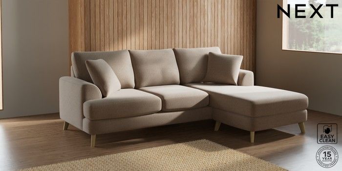 7.2.5 Buy Parker Small Sofa Chaise - Universal Tweedy Blend Easy Clean Light Dove Natural Low Retro Tapered - Light from the Next UK online shop Click here to use our accessible website