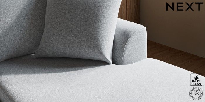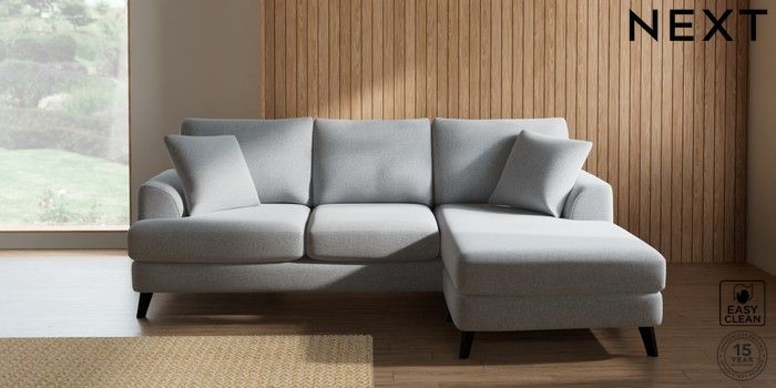7.2.10 Buy Parker Small Sofa Chaise - Universal Tweedy Blend Easy Clean Light Silver Grey Low Retro Tapered - Dark from the Next UK online shop Click here to use our accessible website