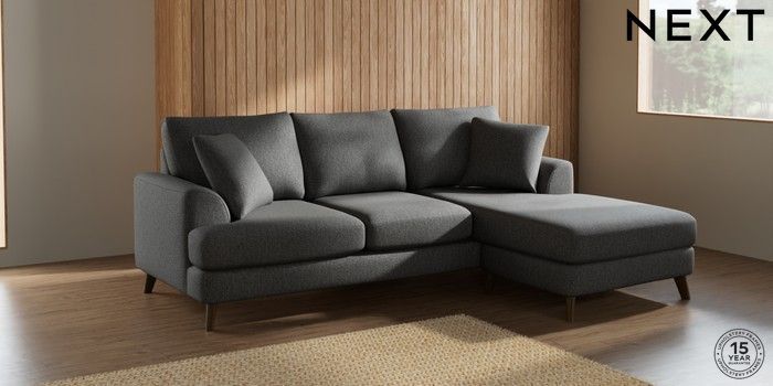 7.2.5 Buy Parker Small Sofa Chaise - Universal Tweedy Chenille Dark Grey Low Retro Tapered - Mid from the Next UK online shop Click here to use our accessible website