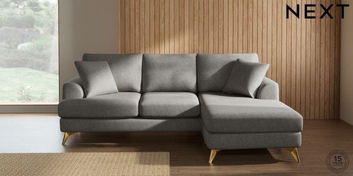 7.2.10 Buy Parker Small Sofa Chaise - Universal Tweedy Chenille Mid Grey High Metal - Brass from the Next UK online shop Click here to use our accessible website