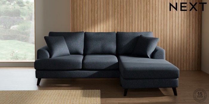 7.3.1 Buy Parker Small Sofa Chaise - Universal Tweedy Chenille Navy Blue Low Retro Tapered - Dark from the Next UK online shop Click here to use our accessible website