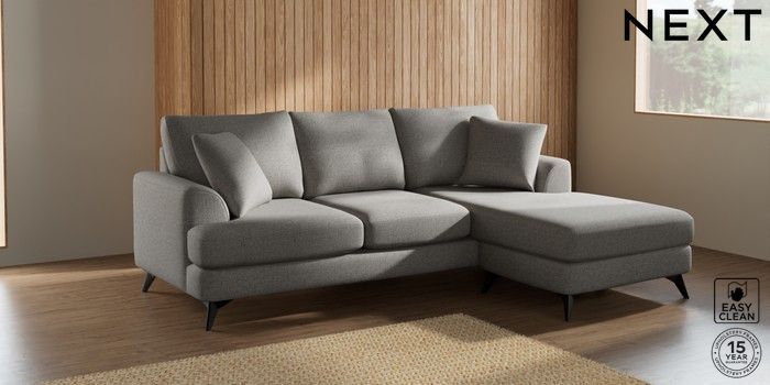 7.2.5 Buy Parker Small Sofa Chaise - Universal Woven Chenille Easy Clean Light Grey High Metal - Black from the Next UK online shop Click here to use our accessible website