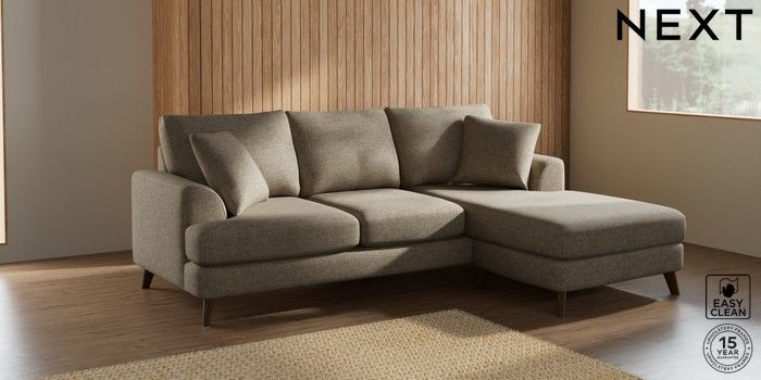 7.2.5 Buy Parker Small Sofa Chaise - Universal Woven Chenille Easy Clean Mid Natural Low Retro Tapered - Mid from the Next UK online shop Click here to use our accessible website