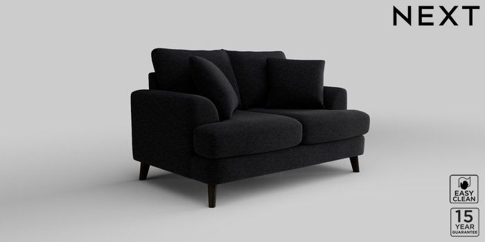 6.12.1 Buy Parker Large Corner Chaise - Right Hand Fine Chenille Easy Clean Black Low Retro Tapered - Dark from the Next UK online shop Click here to use our accessible website