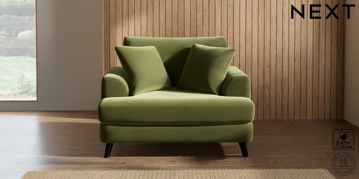7.2.5 Buy Parker Snuggle Plush Velvet Easy Clean Mid Olive Green Low Retro Tapered - Dark from the Next UK online shop Click here to use our accessible website