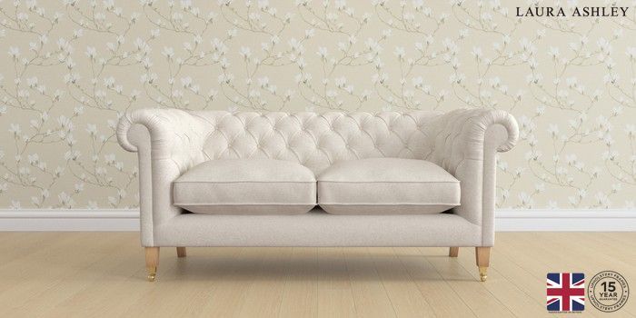 7.2.6 Buy Penarth by Laura Ashley 2 Seater Sofa Anneliese Oyster Natural Straight Brass Castor - Light Oak from the Next UK online shop Click here to use our accessible website