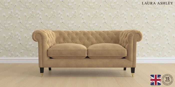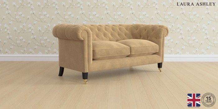6.12.1 Buy Penarth by Laura Ashley 2 Seater Sofa Lundar Chenille Caramel Natural Straight Brass Castor - Black from the Next UK online shop Click here to use our accessible website