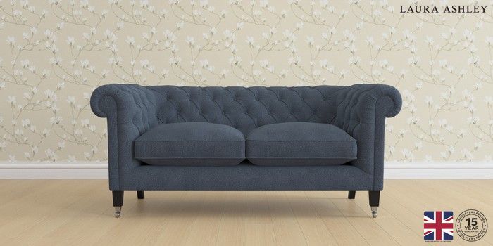 6.12.1 Buy Penarth by Laura Ashley 2 Seater Sofa Lundar Chenille Navy Blue Straight Chrome Castor - Black from the Next UK online shop Click here to use our accessible website