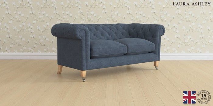 6.12.1 Buy Penarth by Laura Ashley 2 Seater Sofa Lundar Chenille Navy Blue Straight Chrome Castor - Light Oak from the Next UK online shop Click here to use our accessible website