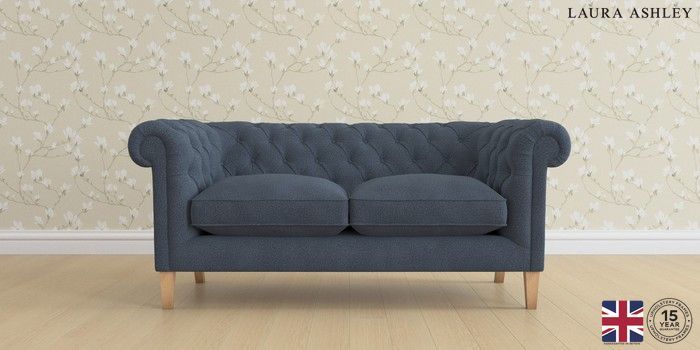 6.12.1 Buy Penarth by Laura Ashley 2 Seater Sofa Lundar Chenille Navy Blue Straight Mid - Light Oak from the Next UK online shop Click here to use our accessible website