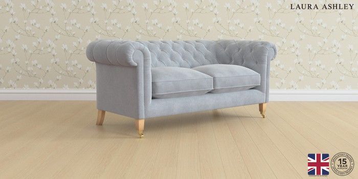 6.12.1 Buy Penarth by Laura Ashley 2 Seater Sofa Peyton Powder Blue Straight Brass Castor - Light Oak from the Next UK online shop Click here to use our accessible website