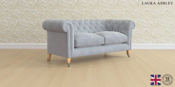 6.12.1 Buy Penarth by Laura Ashley 2 Seater Sofa Peyton Powder Blue Straight Chrome Castor - Light Oak from the Next UK online shop Click here to use our accessible website