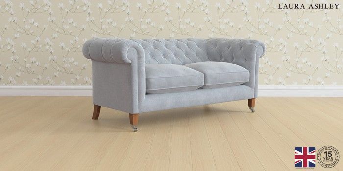 6.12.1 Buy Penarth by Laura Ashley 2 Seater Sofa Peyton Powder Blue Straight Chrome Castor - Teak from the Next UK online shop Click here to use our accessible website