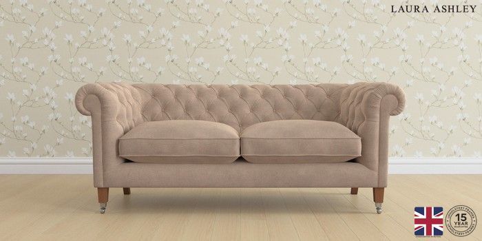 6.12.1 Buy Penarth by Laura Ashley 3 Seater Small Sofa Ailsworth Mink Natural Straight Chrome Castor - Teak from the Next UK online shop Click here to use our accessible website