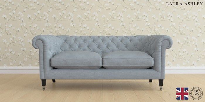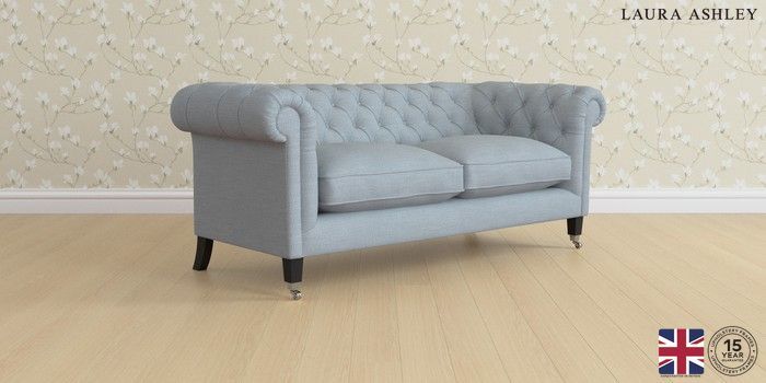6.12.1 Buy Penarth by Laura Ashley 3 Seater Small Sofa Kinsham Seaspray Blue Straight Chrome Castor - Black from the Next UK online shop Click here to use our accessible website