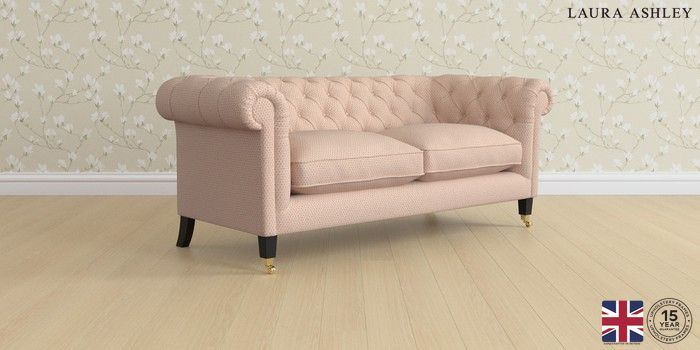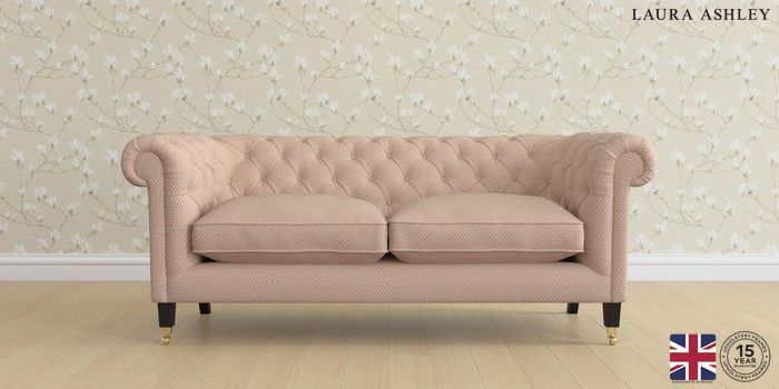 6.12.1 Buy Penarth by Laura Ashley 3 Seater Small Sofa Melbreak Geo Chalk Pink Straight Brass Castor - Black from the Next UK online shop Click here to use our accessible website