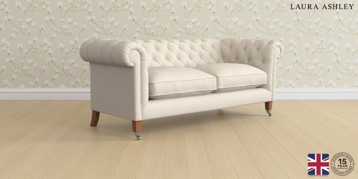 6.12.1 Buy Penarth by Laura Ashley 3 Seater Small Sofa Melbreak Geo Light Natural Straight Chrome Castor - Teak from the Next UK online shop Click here to use our accessible website