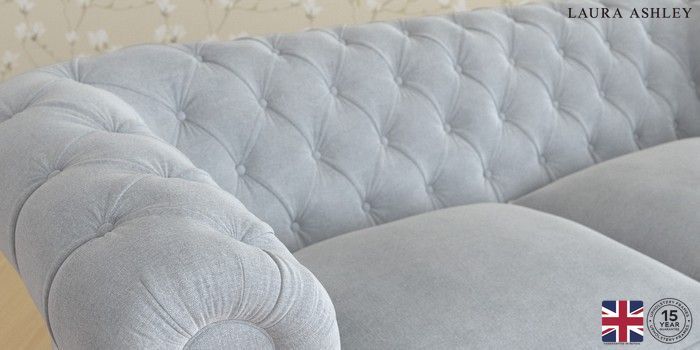 6.12.1 Buy Penarth by Laura Ashley 3 Seater Small Sofa Peyton Powder Blue Straight Chrome Castor - Chestnut from the Next UK online shop Click here to use our accessible website