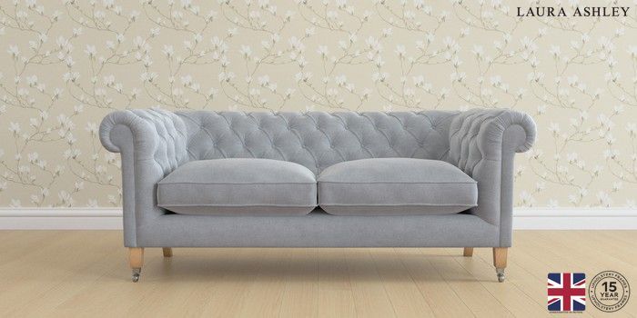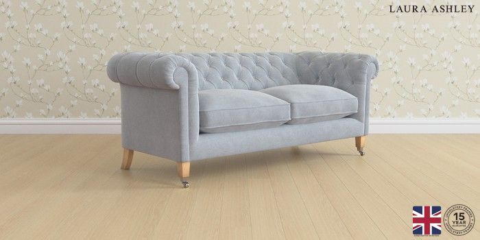 6.12.1 Buy Penarth by Laura Ashley 3 Seater Small Sofa Peyton Powder Blue Straight Chrome Castor - Light Oak from the Next UK online shop Click here to use our accessible website