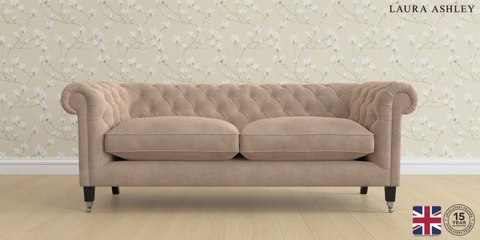 6.12.1 Buy Penarth by Laura Ashley 3 Seater Sofa Ailsworth Mink Natural Straight Chrome Castor - Black from the Next UK online shop Click here to use our accessible website