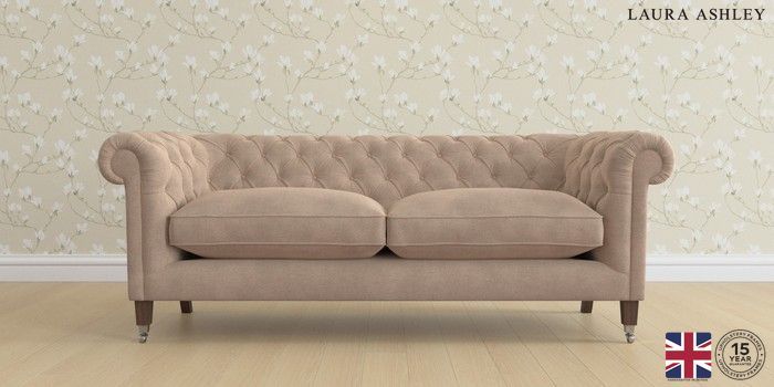 6.12.1 Buy Penarth by Laura Ashley 3 Seater Sofa Ailsworth Mink Natural Straight Chrome Castor - Chestnut from the Next UK online shop Click here to use our accessible website