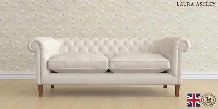 7.2.6 Buy Penarth by Laura Ashley 3 Seater Sofa Anneliese Oyster Natural Straight Mid - Teak from the Next UK online shop Click here to use our accessible website