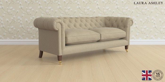 6.12.1 Buy Penarth by Laura Ashley 3 Seater Sofa Chequers Hazelnut Natural Straight Brass Castor - Chestnut from the Next UK online shop Click here to use our accessible website