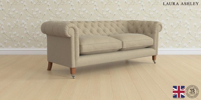 6.12.1 Buy Penarth by Laura Ashley 3 Seater Sofa Chequers Hazelnut Natural Straight Chrome Castor - Teak from the Next UK online shop Click here to use our accessible website