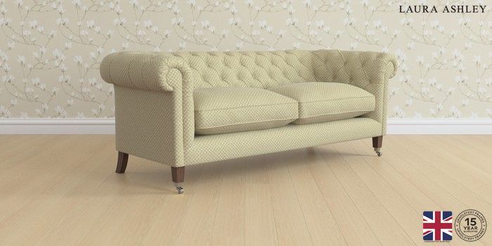 6.12.1 Buy Penarth by Laura Ashley 3 Seater Sofa Chequers Hedgerow Green Straight Chrome Castor - Chestnut from the Next UK online shop Click here to use our accessible website