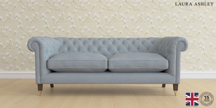 6.12.1 Buy Penarth by Laura Ashley 3 Seater Sofa Kinsham Seaspray Blue Straight Brass Castor - Chestnut from the Next UK online shop Click here to use our accessible website