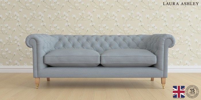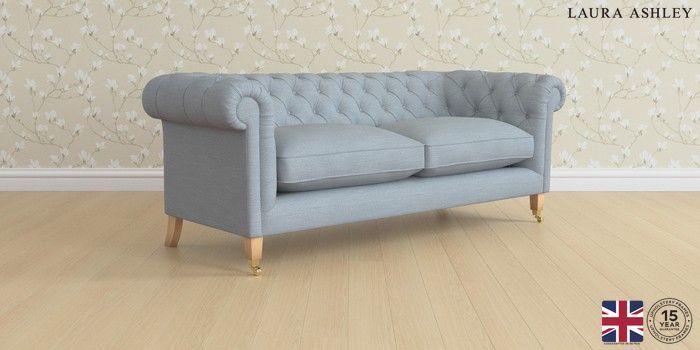 6.12.1 Buy Penarth by Laura Ashley 3 Seater Sofa Kinsham Seaspray Blue Straight Brass Castor - Light Oak from the Next UK online shop Click here to use our accessible website
