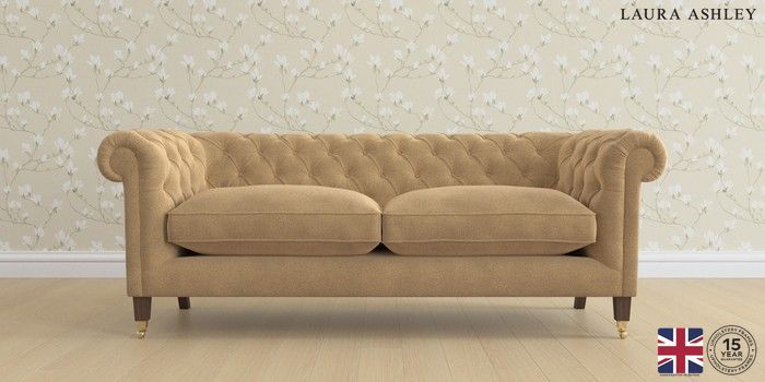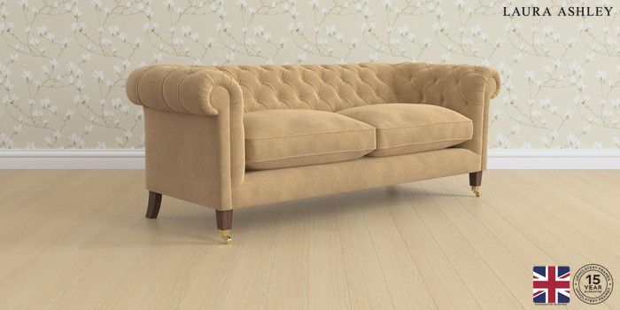 6.12.1 Buy Penarth by Laura Ashley 3 Seater Sofa Lundar Chenille Caramel Natural Straight Brass Castor - Chestnut from the Next UK online shop Click here to use our accessible website