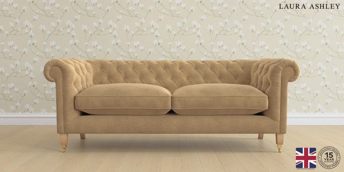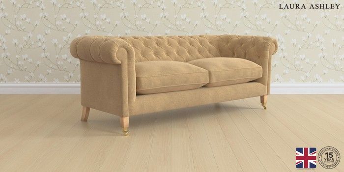 6.12.1 Buy Penarth by Laura Ashley 3 Seater Sofa Lundar Chenille Caramel Natural Straight Brass Castor - Light Oak from the Next UK online shop Click here to use our accessible website