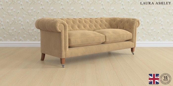 6.12.1 Buy Penarth by Laura Ashley 3 Seater Sofa Lundar Chenille Caramel Natural Straight Chrome Castor - Teak from the Next UK online shop Click here to use our accessible website