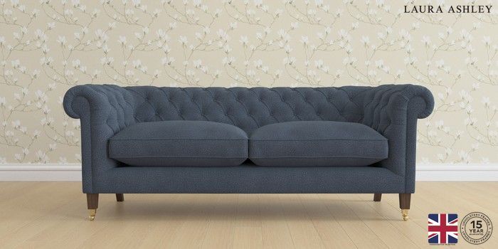 6.12.1 Buy Penarth by Laura Ashley 3 Seater Sofa Lundar Chenille Navy Blue Straight Brass Castor - Chestnut from the Next UK online shop Click here to use our accessible website
