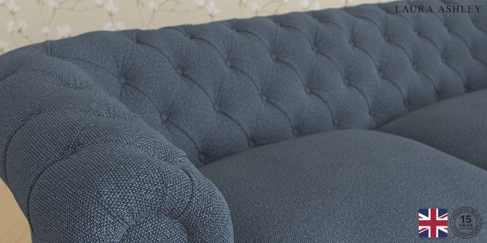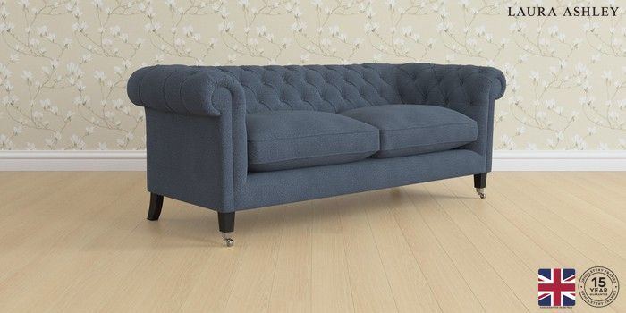 6.12.1 Buy Penarth by Laura Ashley 3 Seater Sofa Lundar Chenille Navy Blue Straight Chrome Castor - Black from the Next UK online shop Click here to use our accessible website