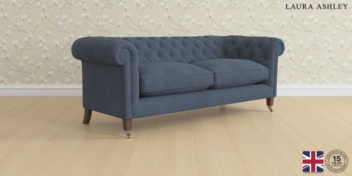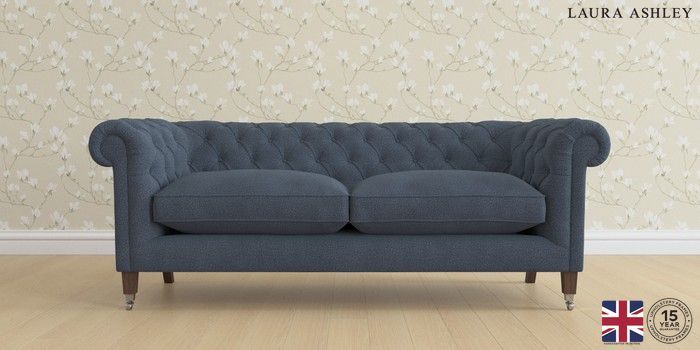 6.12.1 Buy Penarth by Laura Ashley 3 Seater Sofa Lundar Chenille Navy Blue Straight Chrome Castor - Chestnut from the Next UK online shop Click here to use our accessible website