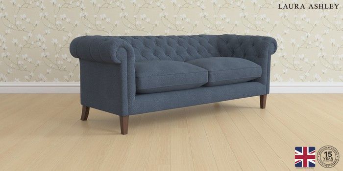 6.12.1 Buy Penarth by Laura Ashley 3 Seater Sofa Lundar Chenille Navy Blue Straight Mid - Chestnut from the Next UK online shop Click here to use our accessible website