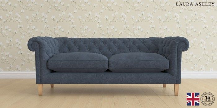 6.12.1 Buy Penarth by Laura Ashley 3 Seater Sofa Lundar Chenille Navy Blue Straight Mid - Light Oak from the Next UK online shop Click here to use our accessible website
