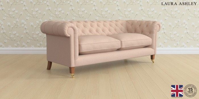 6.12.1 Buy Penarth by Laura Ashley 3 Seater Sofa Melbreak Geo Chalk Pink Straight Brass Castor - Teak from the Next UK online shop Click here to use our accessible website