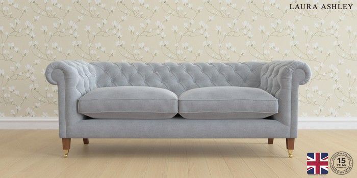 6.12.1 Buy Penarth by Laura Ashley 3 Seater Sofa Peyton Powder Blue Straight Brass Castor - Teak from the Next UK online shop Click here to use our accessible website