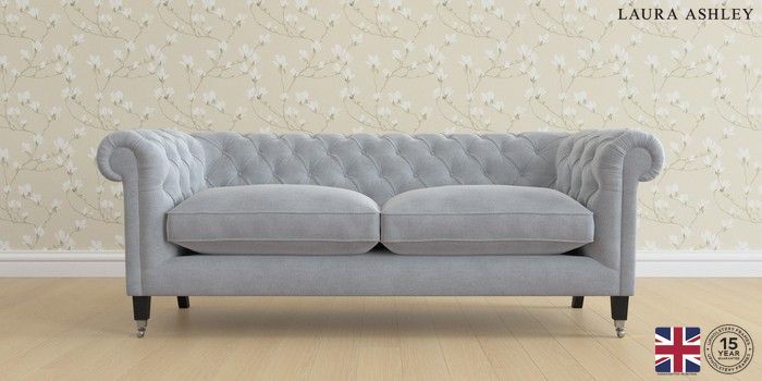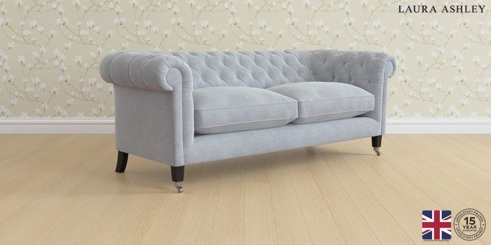 6.12.1 Buy Penarth by Laura Ashley 3 Seater Sofa Peyton Powder Blue Straight Chrome Castor - Black from the Next UK online shop Click here to use our accessible website