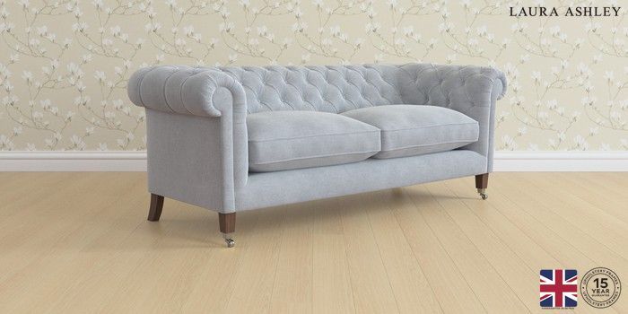 6.12.1 Buy Penarth by Laura Ashley 3 Seater Sofa Peyton Powder Blue Straight Chrome Castor - Chestnut from the Next UK online shop Click here to use our accessible website