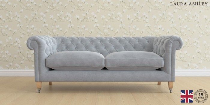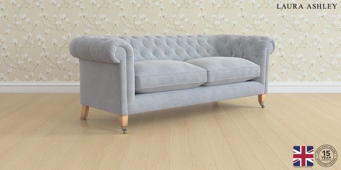 6.12.1 Buy Penarth by Laura Ashley 3 Seater Sofa Peyton Powder Blue Straight Chrome Castor - Light Oak from the Next UK online shop Click here to use our accessible website