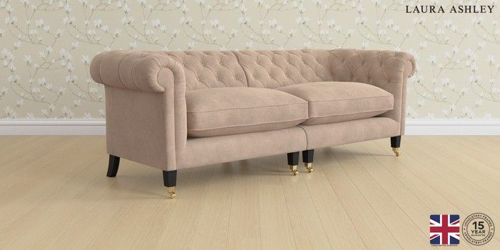 6.12.1 Buy Penarth by Laura Ashley 4 Seater Sofa Ailsworth Mink Natural Straight Brass Castor - Black from the Next UK online shop Click here to use our accessible website