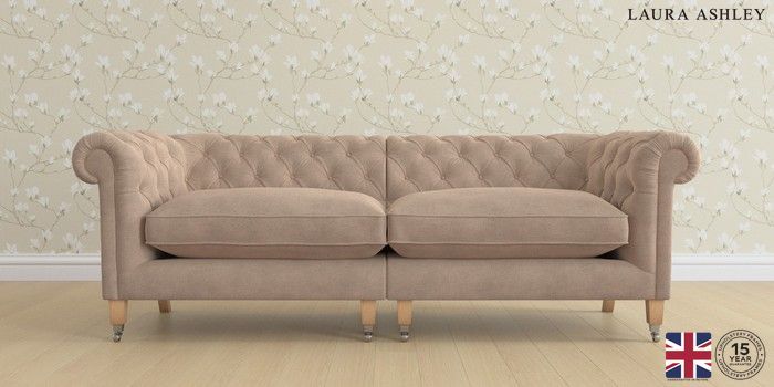 6.12.1 Buy Penarth by Laura Ashley 4 Seater Sofa Ailsworth Mink Natural Straight Chrome Castor - Light Oak from the Next UK online shop Click here to use our accessible website