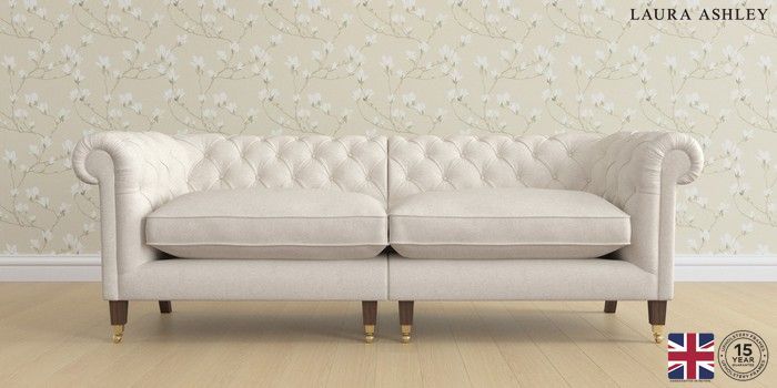 7.2.6 Buy Penarth by Laura Ashley 4 Seater Sofa Anneliese Oyster Natural Straight Brass Castor - Chestnut from the Next UK online shop Click here to use our accessible website
