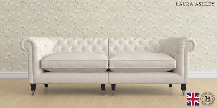 7.2.6 Buy Penarth by Laura Ashley 4 Seater Sofa Anneliese Oyster Natural Straight Chrome Castor - Black from the Next UK online shop Click here to use our accessible website